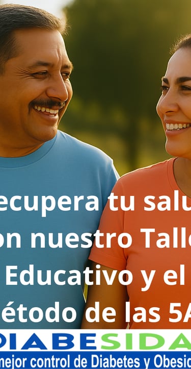 El Taller Educativo de 90 Días “Reto A5: “Recupera tu Salud” es un programa de educación continua en salud, totalmente en línea diseñado para ayudar a las personas con sobrepeso, obesidad, prediabetes o diabetes tipo 2 a entender las causas o motivos que generan la diabetes y la obesidad (Diabesidad) y como aprender a controlarlas , con el fin de recuperar la salud. El taller se basa en el Método A5 de Diabesidad diseñado por el Dr. Alfredo Memije, que integra Actitud ente el problema, Actitud en Alimentación, Actitud para hacer ejercicios, Actitud para la toma de Medicamentos, y Acción constante, como pilares de cambio sostenido. Hablamos de entender cómo funciona tu cuerpo, tus emociones y tu mente para lograr cambios reales y sostenibles.